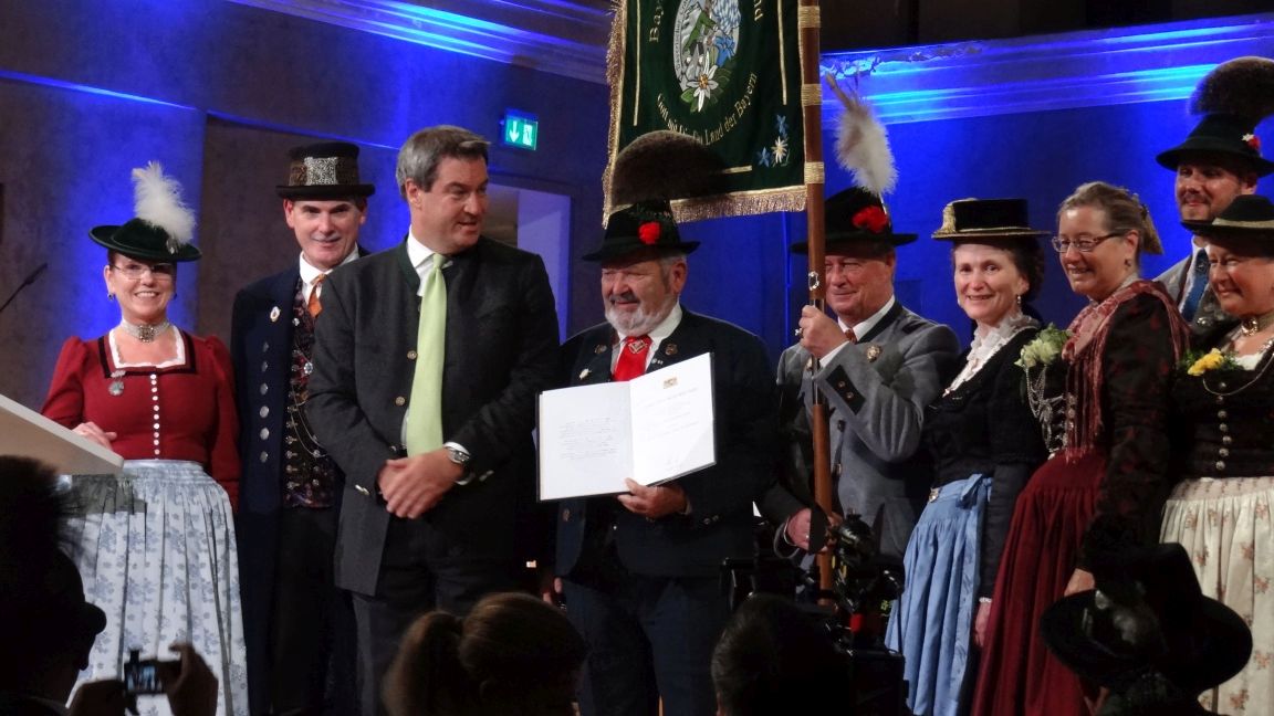 Ob nun dem Wahlkampf geschuldet oder nicht - letztlich war diese Frage unerheblich. Der Festakt "100 Jahre Freistaat - Unsere Heimat Bayern" war für alle, die dabei sein konnten Balsam für das heimatverbundene Herz. Der Höhepunkt der Veranstaltung stellte sicher die Verleihung des Ehrenpreises des Freistaates Bayern für besondere Verdienste um die Heimat für den Bayerischen Trachtenverband dar. Weitere vier Verbände kamen ebenfalls zu der Ehre (Gebirgsschützen, Landesfeuerwehrverband, Bayer. Blasmusikverband und Bayerischer Sportschützenbund). Aber der Reihe nach.