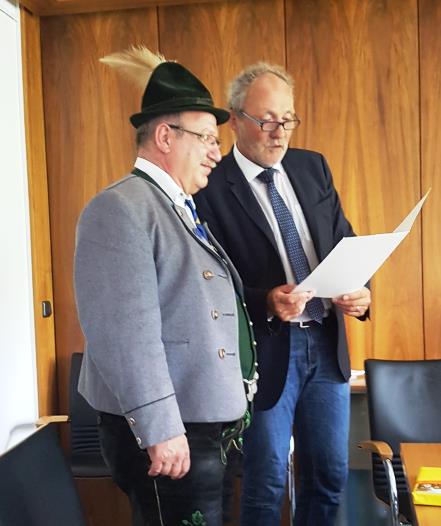 In einer kleinen, aber feinen Feierstunde wurde vom Landrat des Landkreises Unterallgäu, Herrn Hans-Joachim Weirather, das Ehrenzeichen des Ministerpräsidenten an Bernhard Schneider, Vorstand des Trachtenvereins "Günztaler" Ottobeuren, überreicht.