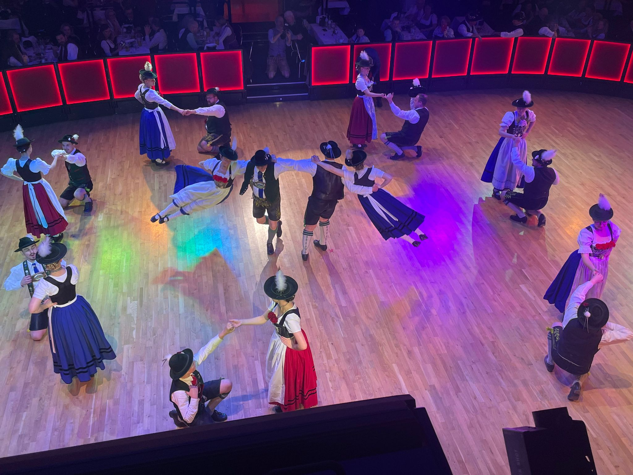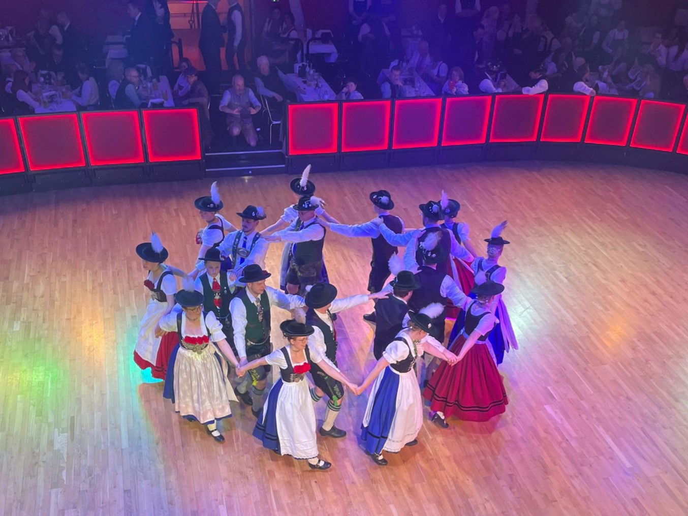 Nach dem Auftanz zeigten die Repräsentantenpaare der Gauverbände einige Mühlradl-Figuren und anschließend die Olympia-Sternpolka. Weitere Höhepunkte bildeten die Auftritte der Trachtler des Isargaus. Um Mitternacht durfte die „Münchner Francaise“ nicht fehlen.