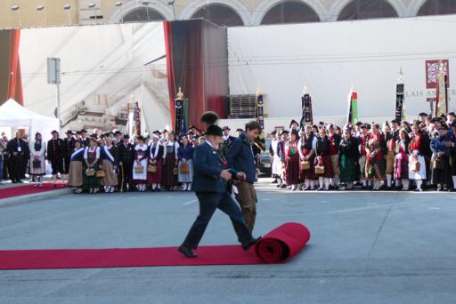 Verbandsvorsitzender Max Bertl legte selbst „Fuß“ an beim Ausrollen des roten Teppichs.