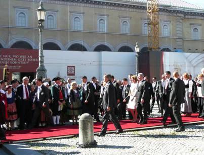 Der Chor der Bayerischen Staatsoper sang am Ende der offiziellen Feier in der Oper auch die bayerische und die deutsche Nationalhymne. Es war ein bewegender Augenblick, als alle Trachtler, die sich vor der Oper versammelt hatten, diese Hymnen mitsangen.