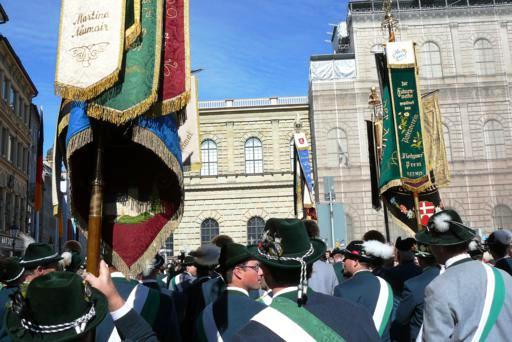 Für uns war es noch ein besonderes Erlebnis, beim Abmarsch hinter der Trachtenkapelle Schongau zu marschieren. Es ist nichts Neues, dass die Blaskapellen aus dem Lechgau eine besondere Qualität haben, aber zu den Klängen des Regimentsgrußes, des bayerischen Defiliermarsches und des Kaiserjägermarschs einen kleinen Festzug durch München zu bestreiten war schon beeindruckend. Die Straßen waren dichtgesäumt von Zuschauern und es machte uns stolz, hier mit dabei zu sein.