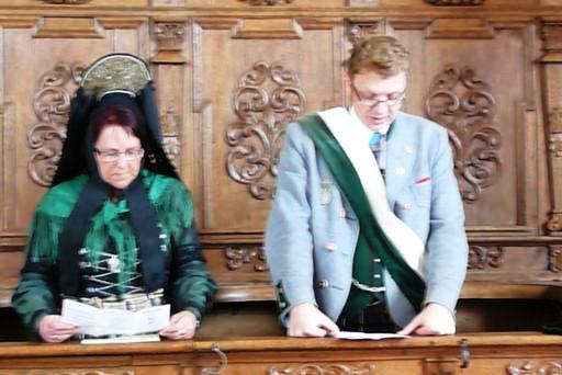 Pfarrer Thomas Pfefferer hielt den anschließenden Wallfahrergottesdienst. In einer beeindruckenden Predigt bedankte er sich bei den Trachtenvereinen für ihr Engagement. Er empfand es als wohltuend, dass in einer Zeit, in der die Gwandkultur bei einem Großteil der Bevölkerung verloren gegangen ist und sich in zerrissenen Klamotten und Jogginganzug zeigt, Trachtenvereine die Pflege der Tracht weiterhin als eine Hauptaufgabe sehen. Man muss einen Unterschied erkennen, vor Gott sollte man nicht als abgerissener Hausierer treten sondern im schönsten Festgewand. Er spann in seiner Predigt den Faden von den Trachten, bei welchen man genau weiß, woher die Träger dieser Trachten stammen, über die Trachten der Zünfte, der Ministranten bis hin zum Taufkleid. Bei allen Gruppierungen ist die Herkunft und das Wirken ersichtlich, sei es der Handwerker, der durch seine Kleidung signalisiert, mit mir könnt ihr rechnen oder als Ministrant mit der Aufgabe, den liturgischen Dienst am Altar zu leisten. Dem Markenterror, dem manche Kinder in den Schulen ausgesetzt sind, erteilte er eine klare Absage. Man hätte ihm noch lange Zeit zuhören können.