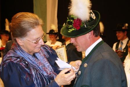Alexandra führt seit 1989 die Protokolle des Gaues. Marianne Hinterbrandner bezeichnete sie als „den ruhenden Pol im Gauausschuss“. Darüber hinaus hat sie sich in ihren Vereinen Kissing und Königsbrunn in vorbildlicher Weise um die Jugendarbeit verdient gemacht. Sie hat auch maßgeblich dabei mitgewirkt, dass im Verein Kissing des altboarische Gwand eingeführt und getragen wird. Seit 25 Jahren ist sie auch auf fast jedem Gauwertungsplatteln mit hervorragenden Ergebnissen dabei. Erst vor wenigen Wochen ist es ihr wieder gelungen, beim „Bayerischen Löwen“ den 5. Platz zu erringen. Herzlichen Glückwunsch Alexandra zum Ehrenzeichen des Gauverbandes in Bronze!