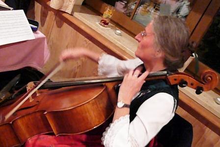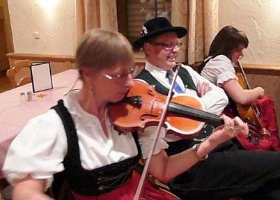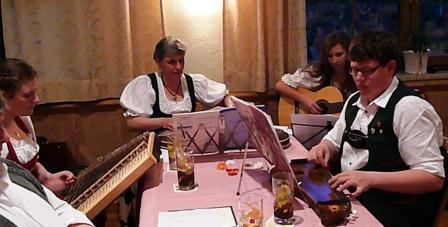 Volksmusikgruppe Burgau mit dem für die Volksmusik seltenen Instrument Cello (unten)