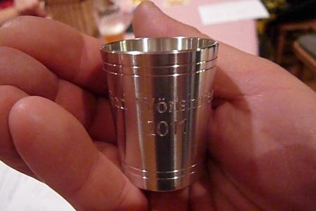 Zum Abschluss erhielt jeder Teilnehmer wieder ein Zinnstamperl zur Erinnerung. Die sehr gastfreundliche Wirtin Martina Schwarzfischer vom „Stern“ in Rammingen ließ es sich nicht nehmen, jedem sein Stamperl zu füllen.