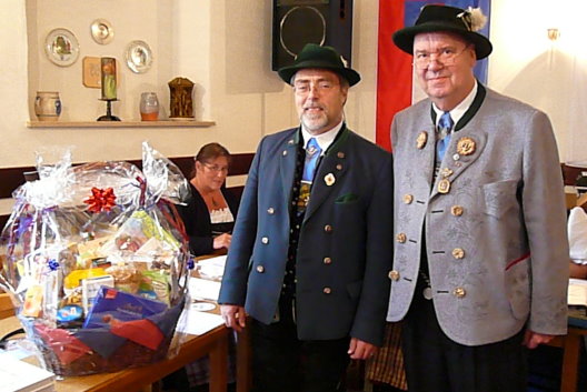 Gauvorstand Gerhard Hinterbrandner nahm die Versammlung zum Anlass, um sich bei einigen langjährigen Weggefährten zu bedanken: Er überreichte Erwin Oppenländer und dessen Frau Alexandra ein Buch über Trachten in Deutschland, Alexandra durfte einen Rosenstrauß mit nach Hause nehmen. Auch seine Frau Marianne wurde mit einem Rosenstrauß bedacht.