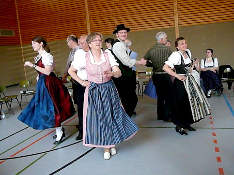 Bereits am Freitag war ein kurzer theoretischer Abriss über Tanzschritte, Ausgangsstellungen und Handfassungen auf dem Programm. Allerdings stellte sich heraus, dass Praxis vor Theorie geht. So stieg man am Abend in die Materie ein und sah sich die geforderten Tänze näher an. Natürlich waren zur Entspannung diverse andere Volkstänze eingeplant.