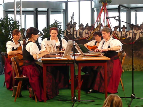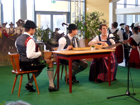 Die Vöhringer Stubnmusi ließ sich erst auf der Bühne hören, danach wechselten sie auf den Stand des Gaues und lockten damit viele Besucher an.