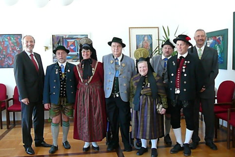Im Rahmen eines Empfangs des Bürgermeisters der Marktes Ottobeuren anläßlich des Gaufestes konnte Gauvorstand Gerhard Hinterbrandner das Gauehrenzeichen an das Ehepaar Gertrud und Anton Vollmar überreichen. Bisher war der Spruch üblich: Hinter einem starken Mann steht eine starke Frau, diesmal war es umgekehrt. Gertrud Vollmar ist seit 37 Jahren im Ottobeurer Verein verwurzelt und hat in dieser Zeit Verantwortung mitgetragen. Seit 2006 ist sie die stellvertretende Vorsitzende des Vereins. Ihr Ehemann Anton trägt seit 1988 die Fahne des Vereins. Darüber hinaus engagieren sich beide in der Bezirksgruppe des Bezirks Mindelheim und haben hier auf vielen Veranstaltungen den Gauverband mitvertreten.