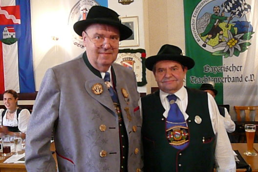 Eine besondere Ehre wurde dem langjährigen Standartenträger Wiggerl Strasser zuteil: Er erhielt aus der Hand von Gerhard Hinterbrandner das Ehrenzeichen für besondere Verdienste in silber. Wiggerl hat 15 Jahre lang zuverlässig die Gaustandarte getragen, bei jedem Wetter, bei guten und auch traurigen Anlässen. Hinterbrandner erwähnte besonders das Gaufest des Gauverbandes I in Unken, bei welchem bei brütender Hitze ein fast 14 km langer Festzug zu verzeichnen war. Selbstredend lehnte Wiggerl eine Marscherleichterung ab, obwohl unsere Standarte durch die massive Zirbelnuss sehr kopflastig zu tragen ist. Wiggerl hatte im Standartenträger unseres Paten, dem Chiemgau-Alpenverband Martin König einen guten Lehrmeister. Wiggerl ist Vorbild für alle Fähnriche.